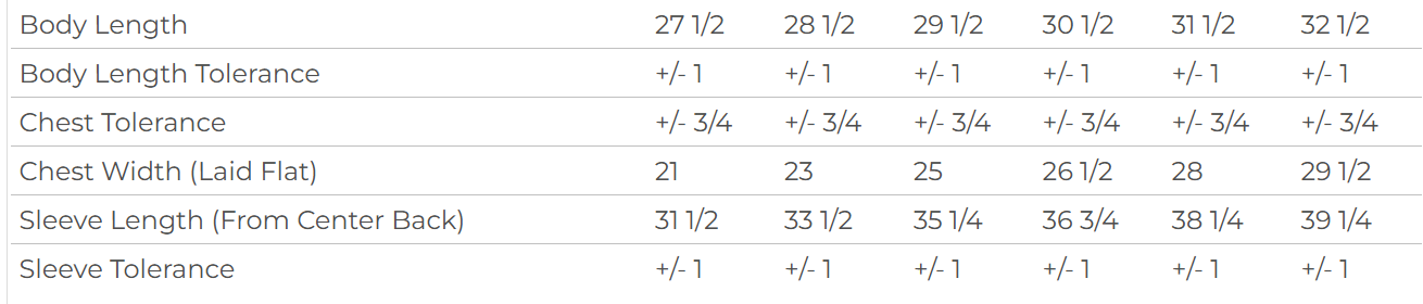 9.5 oz./yd² (US), 15.9 oz /L yd (CA), 80/20 ring-spun cotton/polyester, 30 singles